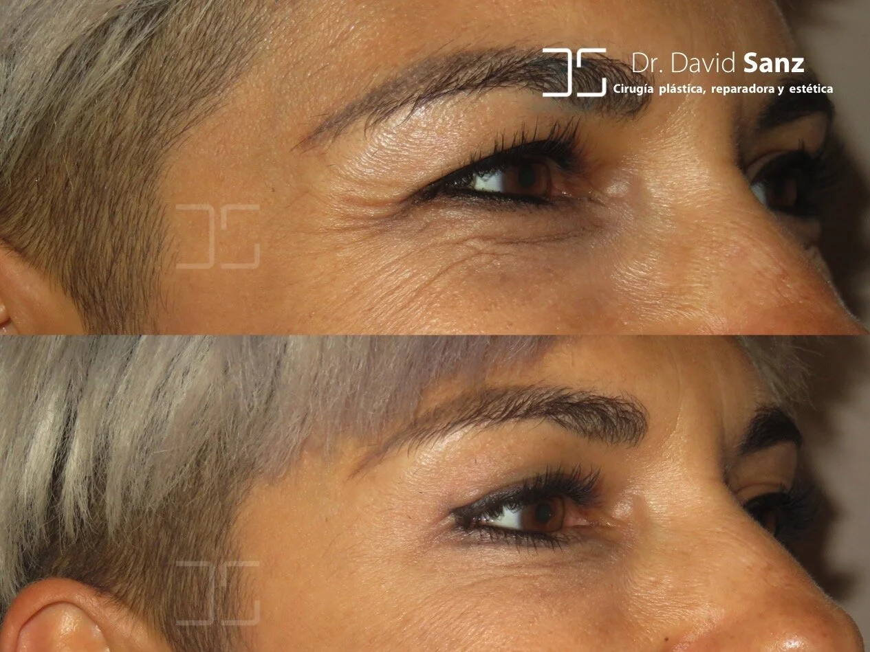 Muchas veces terminaremos de rejuvenecer la zona periocular, ya en la consulta, con un tratamiento de ojeras con ácido hialurónico y/o reduciendo las arrugas de los laterales poniendo toxina botulínica en las patas de gallo.