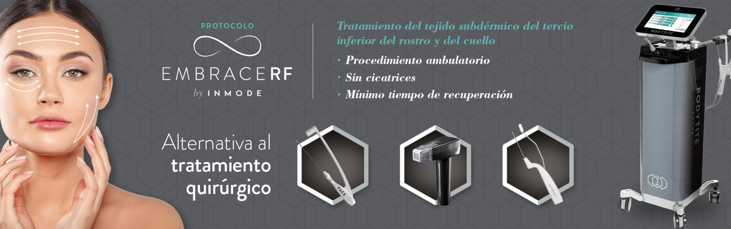“El protocolo EmbraceRF es el tratamiento perfecto para pacientes que aún teniendo diagnóstico de lifting facial, quieren resultados semejantes o mejores, con una más rápida recuperación, mayor seguridad, y sin cicatrices.”