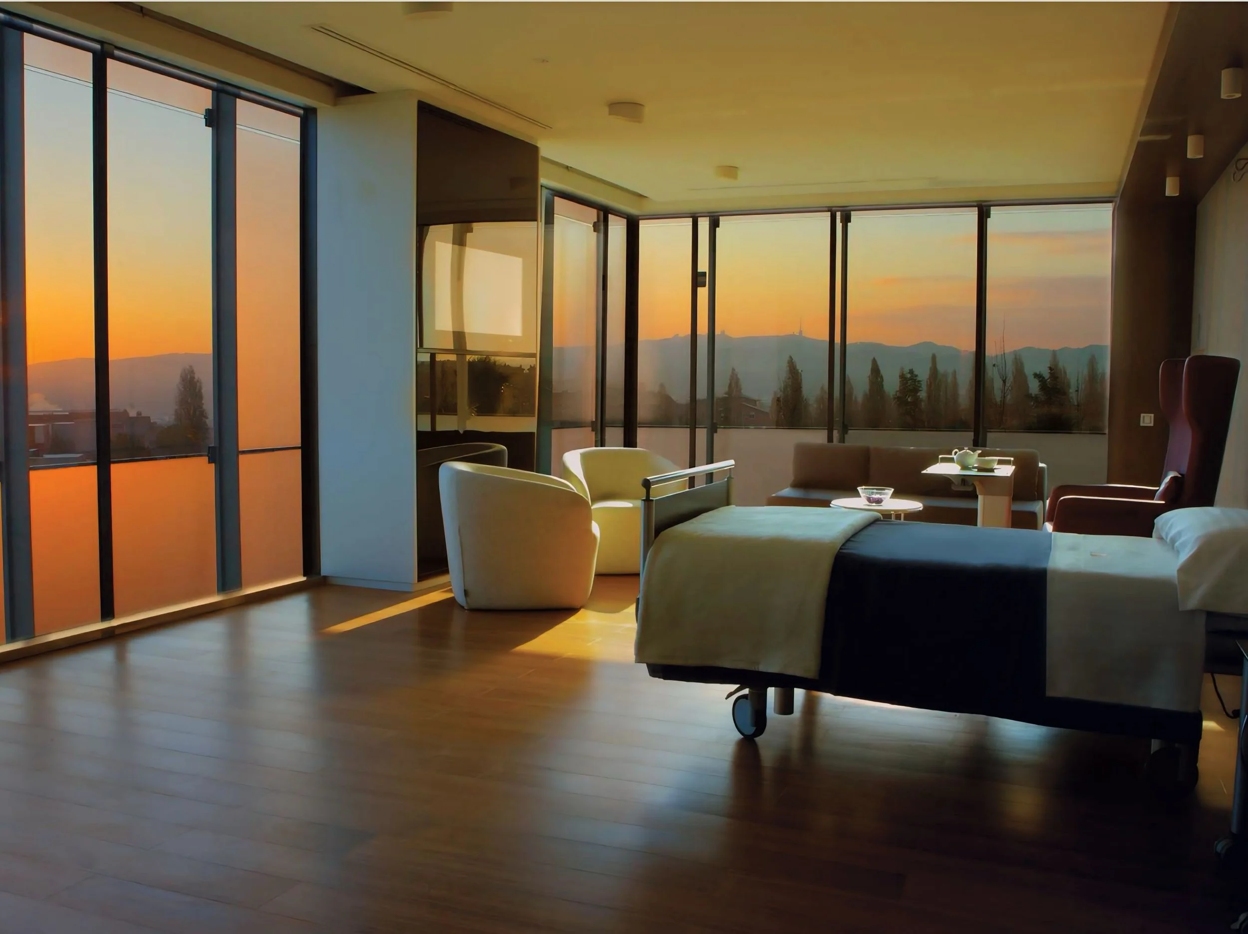 Las habitaciones son amplias, luminosas y privadas, equipadas con baño, TV, WiFi y espacio para el acompañante, favoreciendo una recuperación tranquila y cómoda. Todo ha sido pensado para ofrecer una estancia serena, discreta y respetuosa con la intimidad del paciente.