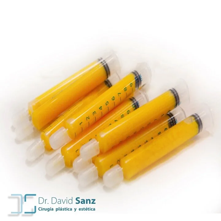 2. Purificado de la grasa. Una vez hemos reservado una cantidad suficiente de grasa, la lavamos y purificamos. Éste es un paso muy importante, ya que es el que depura las toxinas de la grasa, restos de sangre, del líquido de la tumescencia, células muertas y otros detritus… para “concentrar” esa esencia de autoinjerto de grasa totalmente autólogo.