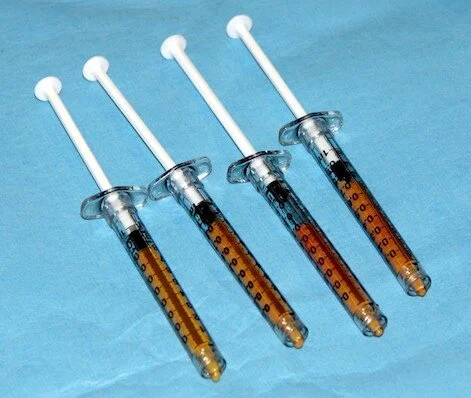 2. Purificado de la grasa. Una vez hemos reservado una cantidad suficiente de grasa, la lavamos y purificamos. Éste es un paso muy importante, ya que es el que depura las toxinas de la grasa, restos de sangre, del líquido de la tumescencia, células muertas y otros detritus… para “concentrar” esa esencia de autoinjerto de grasa totalmente autólogo.
