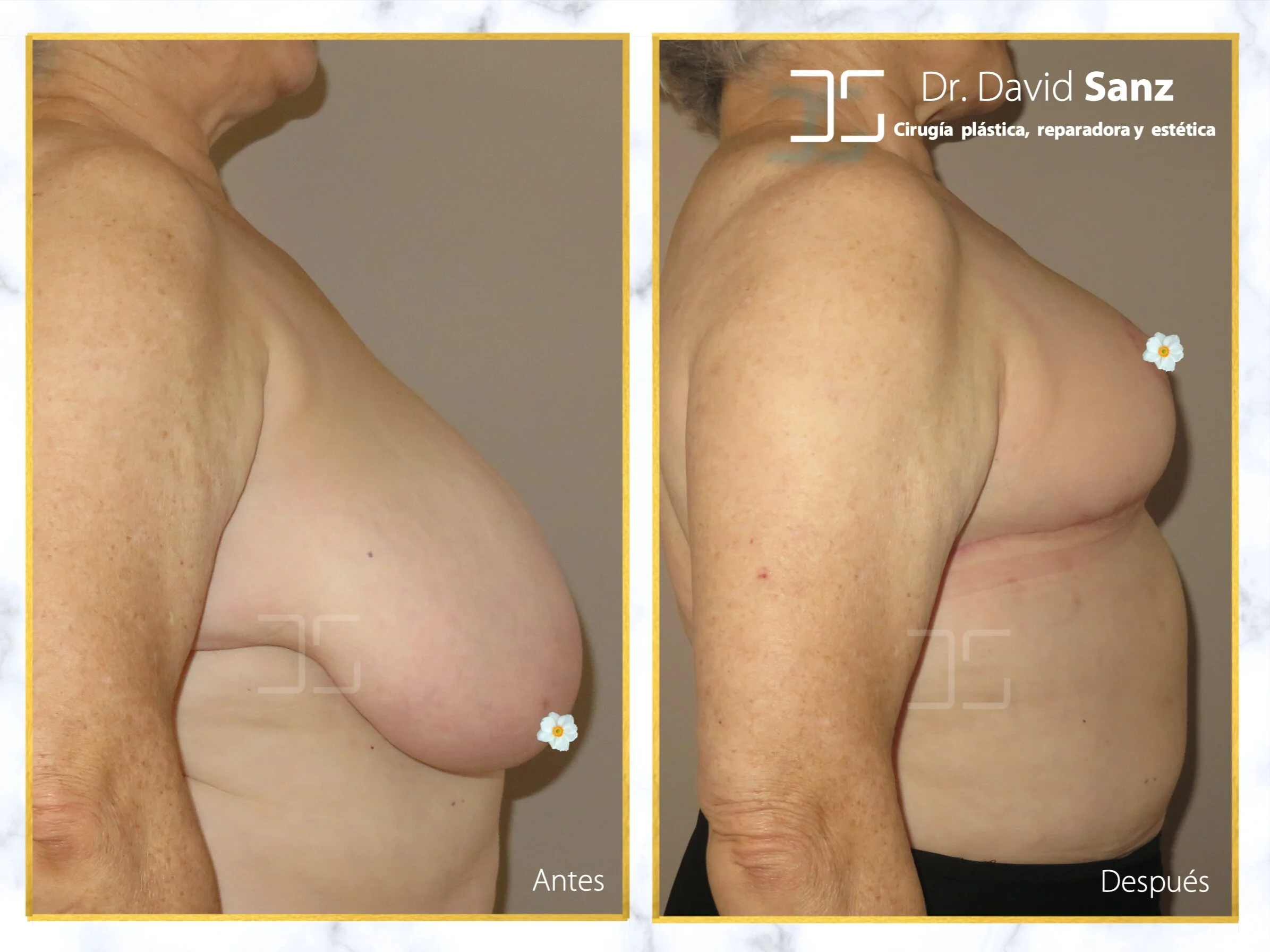 Además, puede ser un procedimiento necesario en una paciente sometida a reconstrucción mamaria, principalmente para simetrizar la mama contralateral, es decir, para asemejar la mama “sana” a la mama que estuvo enferma y que ha sido reconstruida.
